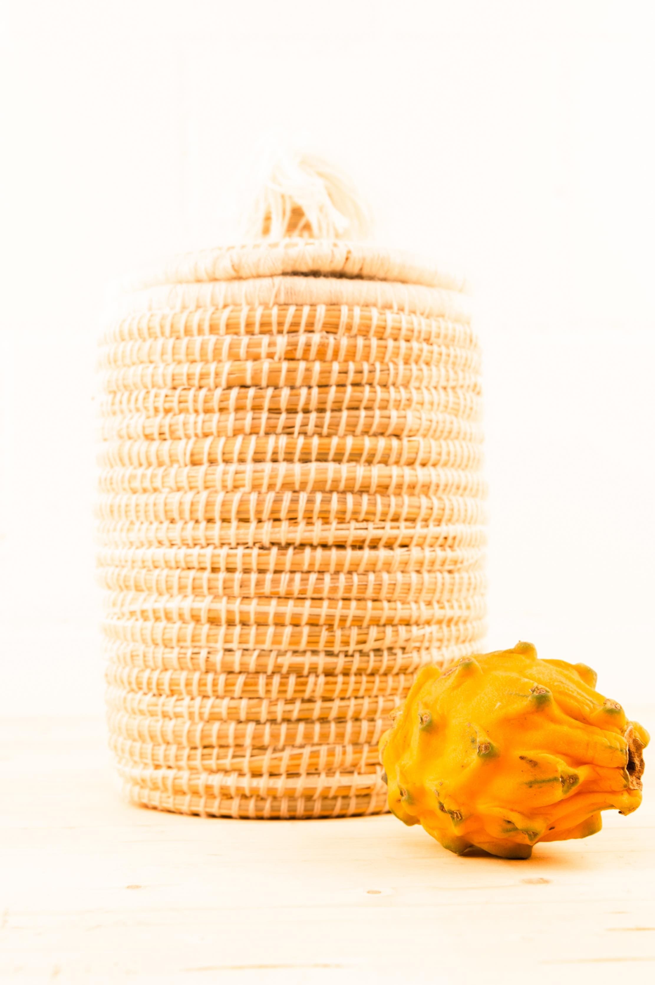Keep your home neat and tidy with our curated selection of hand-crafted storage baskets. Made in Marrakesh from only two materials: raffia and thread, using a typical Moroccan technique. An object that gives a boho touch to your home décor, especially thanks to the funny pompom on the lid.